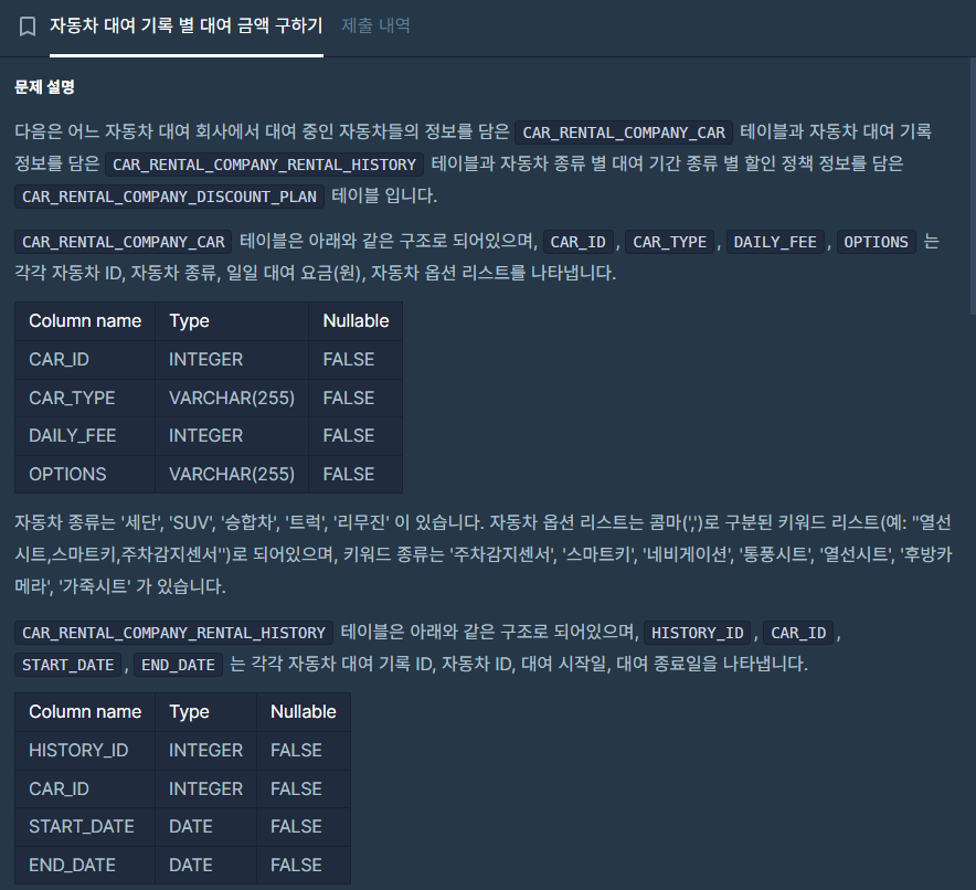 | [프로그래머스] 특정 기간동안 대여 가능한 자동차들의 대여비용 구하기(MySQL) (0) | 2025.12.23 |